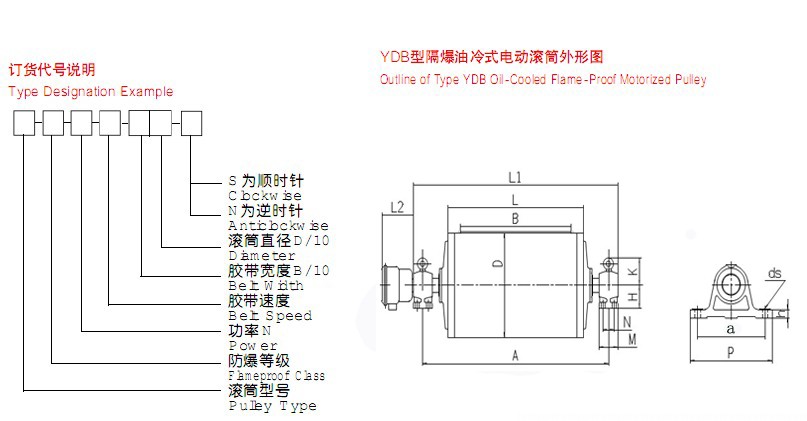 YDB隔爆型油冷式电动滚筒外形尺寸