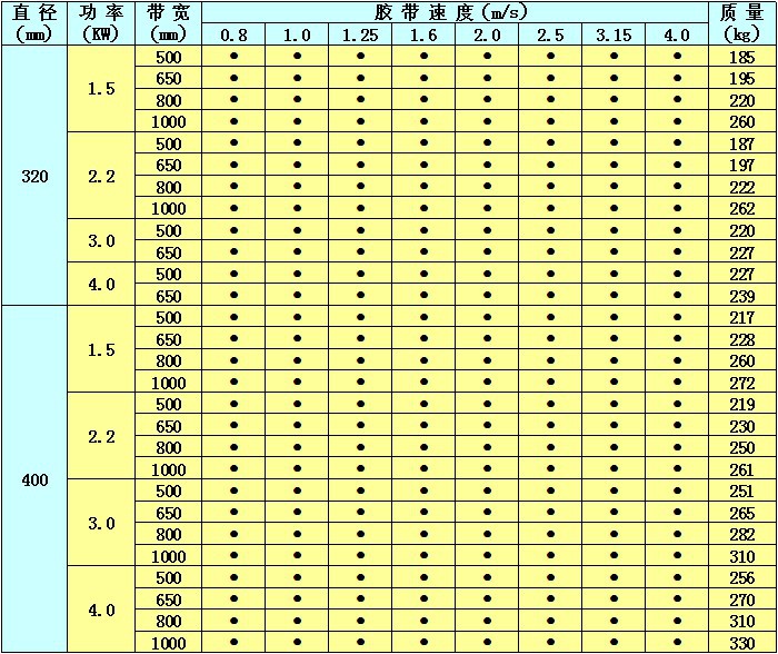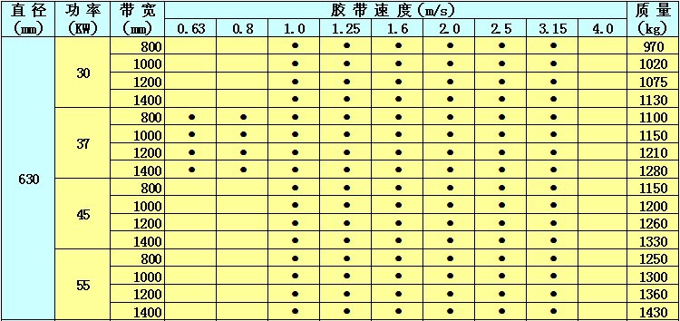 YDB隔爆型油冷式电动滚筒基本参数